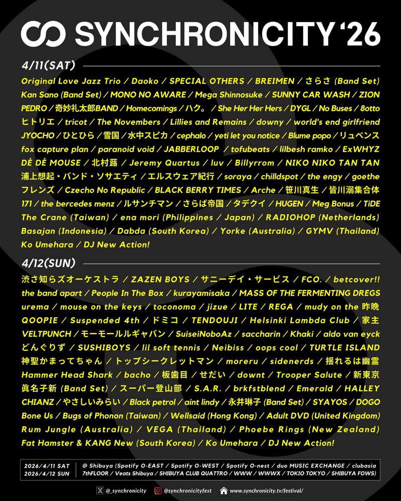 「SYNCHRONICITY’26」タイムテーブル発表!